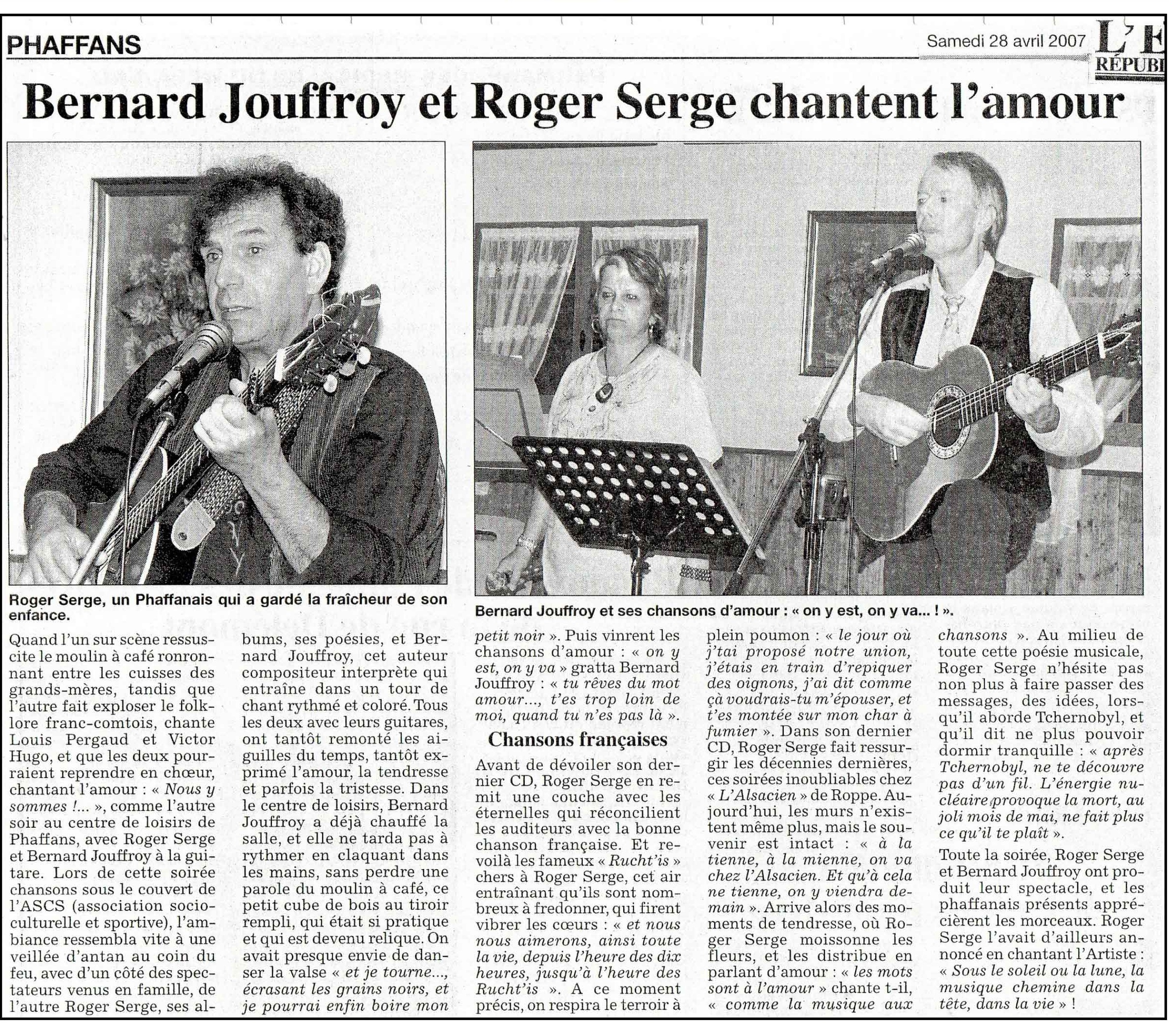 Article de Presse : Bernard Jouffroy et Roger Serge chantent l’amour